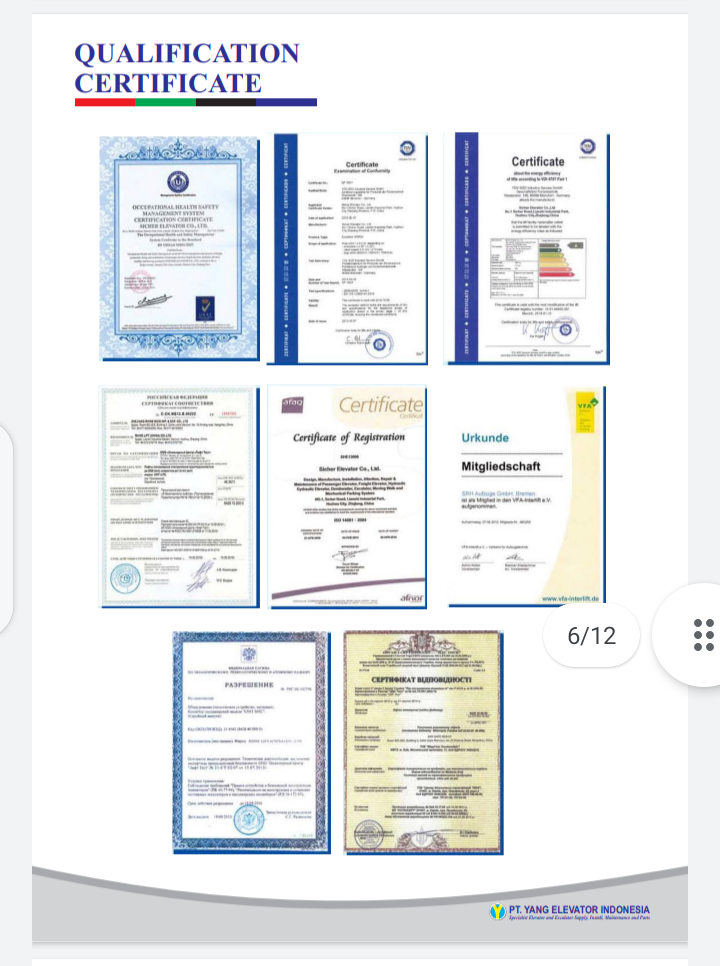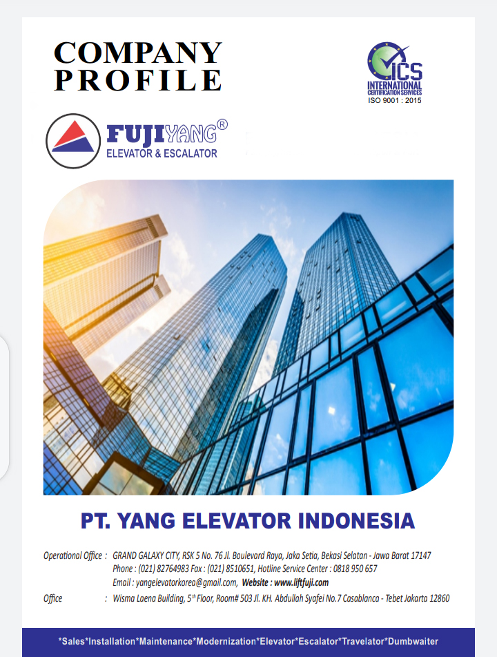 Each Escalator, elevator, moving walk and complete accesories from FUJI are fully implemented management system : ISO 9001, ISP14001 and OSHAS18001. Meanwhile, it prosesses international certificate of CE, SASO, CU-TR, and etc.